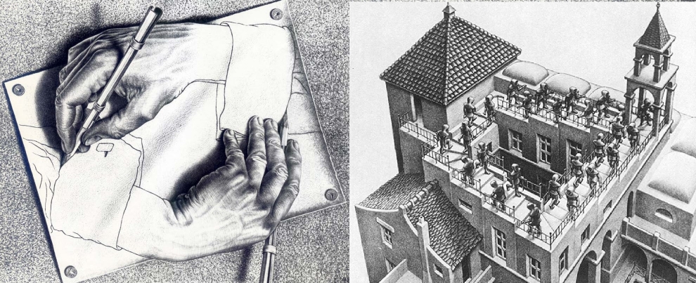 (M.C. Escher's Drawings: Drawing Hands & Ascending and Descending)